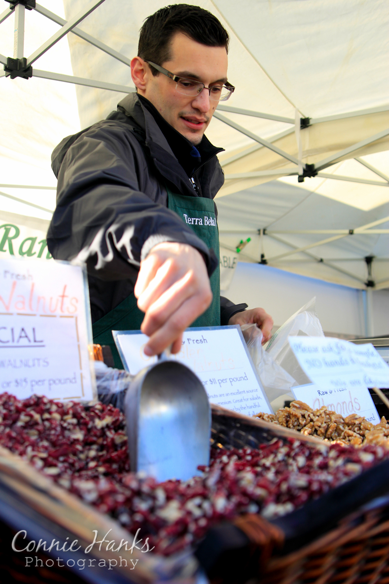 Most of these photos have the merchandiser’s goods in the photo, particularly in the foreground. I used a really wide aperture (f/2.8 to f/3.5) on all of these photos, and adjusted my focal point to get a sharp focus on their eyes. Including the merchandise, and background components, really fills in the pieces and completes the story. Remember that old saying – a photo worth a thousand words? All those items you include help get you closer to that many words!