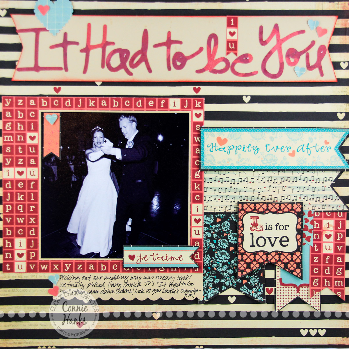 Connie, beautiful!!! Oh this post brings back many memories for me. Some good and some bad. The best memory for me goes with a Shania Twain song called Always and Forever. I was dating this guy and every time we got into the car, that song would play. Not really paying attention to it at first, but after awhile both of us realized it. We started listening to the words of that song and agreed that was how we felt about each other. Oh we loved to hear that song on the radio. I bought the CD and we listen to it everyday!! That was 9 years ago. He past away three days after we found out we were having a baby. Oh how, I miss him. My daughter is a splitting image of him and when I miss him I play the same CD and her and I sing it together. The song was somewhat right, I would have a part of him always and forever, my daughter! Thanks for this post today! It made my heart flutter to think of him. I need to scrapbook this, lol!